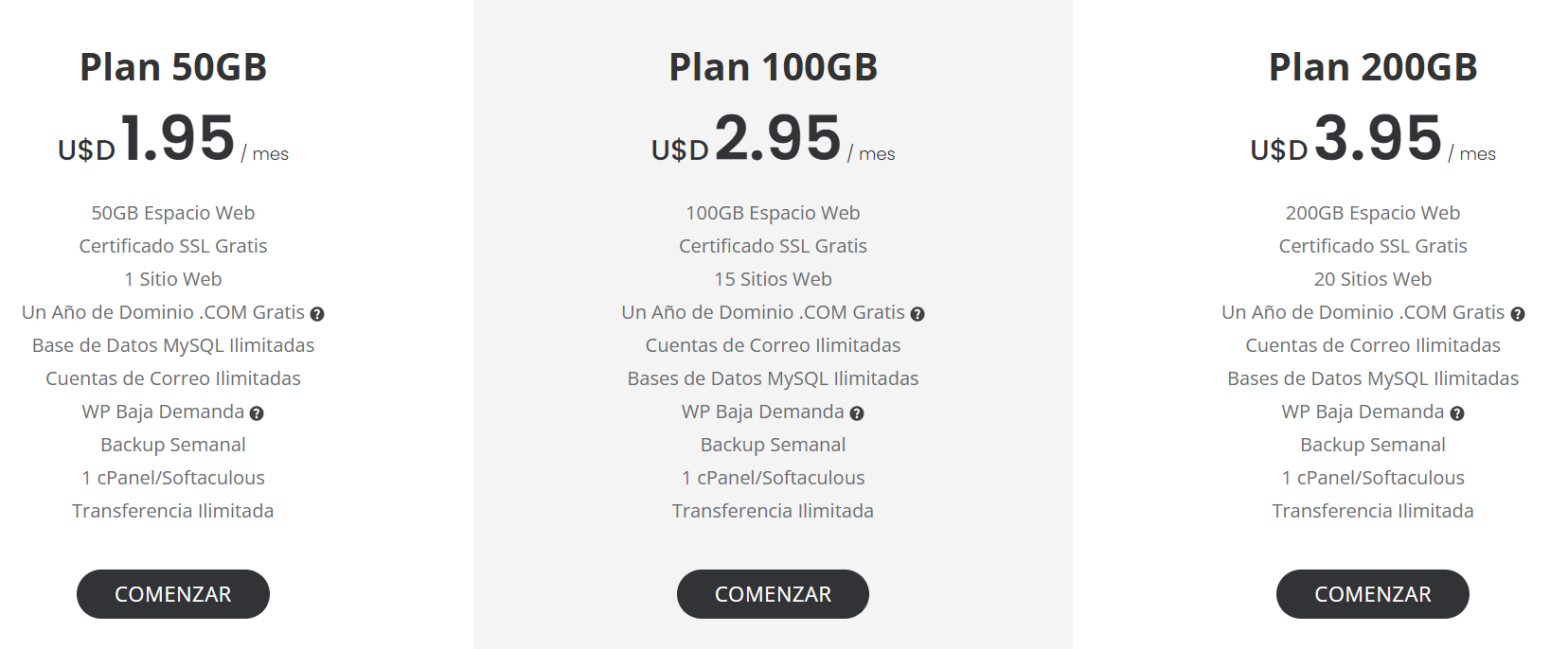 Haz clic en el botón “COMENZAR’ del plan que deseas contratar en tu navegador.